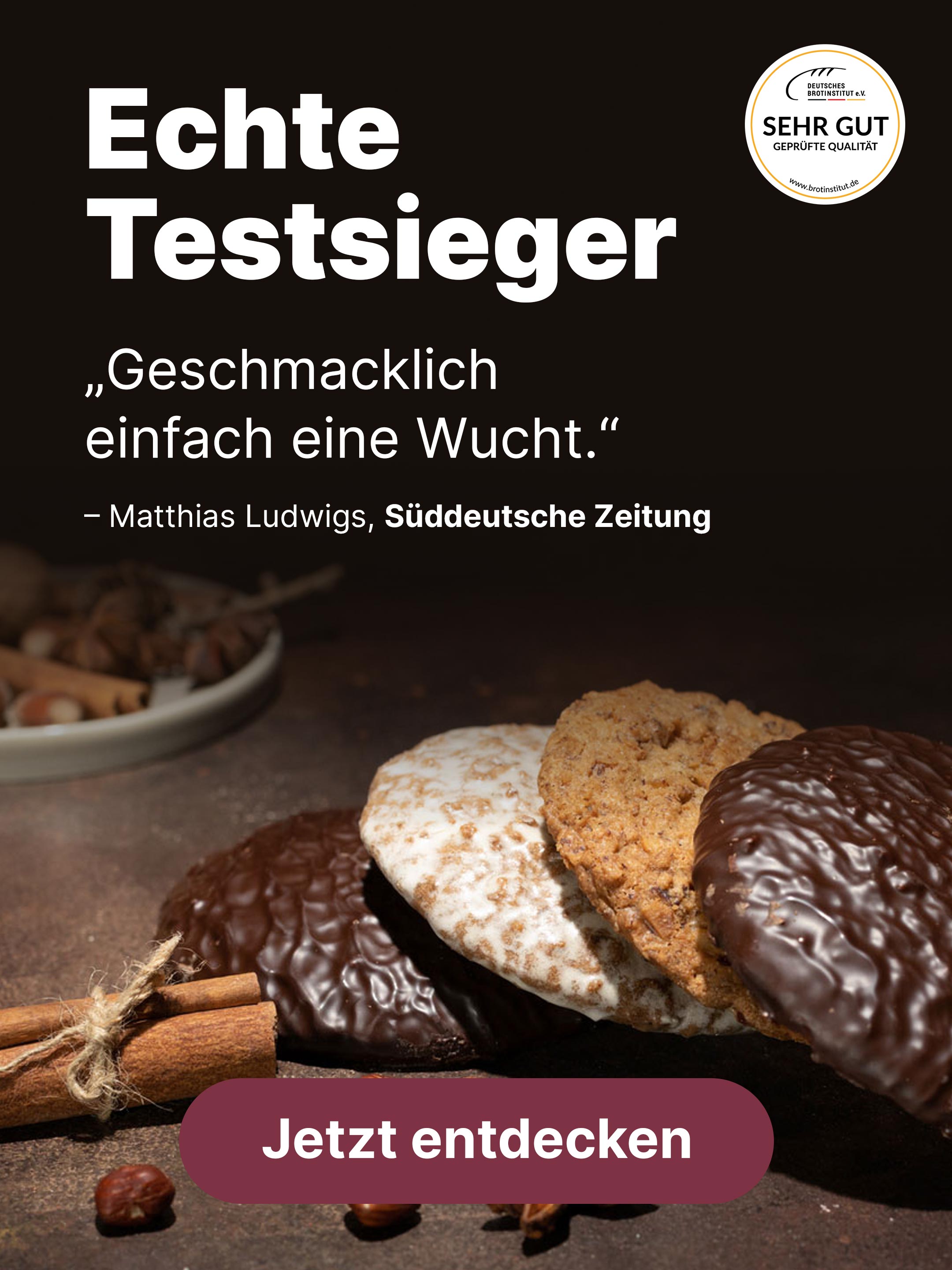 Konditormeister, Matthias Ludwigs, hat für die Süddeutsche Zeitung Elisenlebkuchen getestet. Für den Test hat Ludwigs acht verschiedene Elisenlebkuchen auf Herz und Nieren geprüft. Bei diesem Test sind unsere Echten Eckstein Elisen Lebkuchen mit 9 von 10 Punkten Testsieger geworden.
